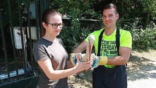 Csatornából mentettek meg egy kis gólyát a tűzoltók