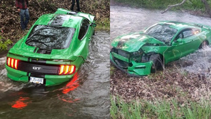 Driftelni próbált háromnapos Mustangjával, patakban kötött ki vele
