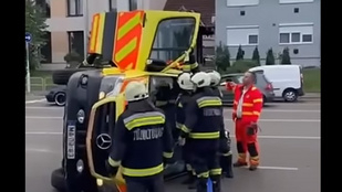Karambolozott, majd oldalára borult egy mentőautó Egerben