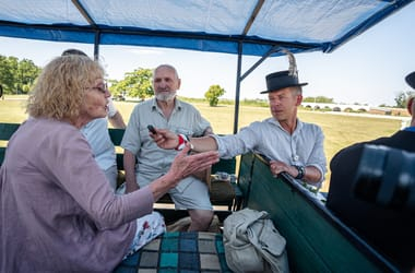 Magyar Péter lovas kocsin érkezett a Hortobágyra, ahol szűrben beszélgetett a kecsketenyésztésről (videóval)