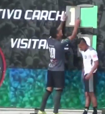 A guatemalai másodosztályú labdarúgó-bajnokság viszonylag ritkán kerül be a hírekbe, a Deportivo Carchá játékosa, Luis Acuna azonban tett róla, hogy ezúttal ne így legyen. A futballista a Deportivo Jocotán elleni találkozón tizenegyesből szerzett gólt, majd saját kezébe vette az irányítást: felmászott egy létrán, hogy megváltoztathassa a mérkőzés állását az eredményjelzőn – számolt be a nem mindennapi esetről a BBC. részletek