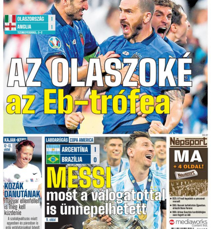 Míg a nemzetközi sajtó a legyőzhetetlen olasz labdarúgó-válogatott teljesítménye előtt tiszteleg, az angolok az oly közeli, végül mégis elszalasztott esélyt siratják. A Wembleyben lejátszott Eb-döntő másnapján szinte elvétve találni olyan brit lapot, amelynek címlapjáról ne az utolsó tizenegyest elhibázó, szomorkodó Bukayo Saka köszönne vissza az olvasóra. Az olaszok ünnepelnek, Roberto Mancini szövetségi kapitányt éltetik – s azt sem felejtik el, tökéletes volt nekik a július 11-e! részletek