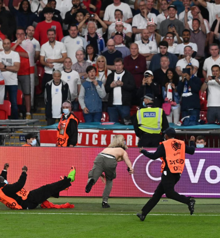 A labdarúgó Európa-bajnokság döntőjének második félidejében egy férfi szaladt be a pályára, és csak üggyel-bajjal tudták elkapni a rendezők. Mutatjuk képekben! részletek