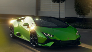 A levelibéka-zöldben bemutatott Huracán változat hátsókerék-hajtású, 640 lóerős, és versenypályán is jól használható.