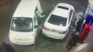 A találékony önvédelem oktatóvideója lehetne a mutatvány, ahogy visszakergette a furgonjukba a tolvajukat a hidegvérű tankoló.