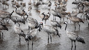 Gyermeki örömmel pancsoló darvakat filmeztek a Hortobágyi Nemzeti Parkban