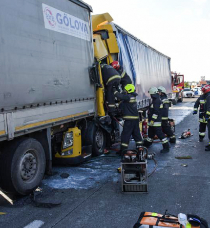 Így szabadították ki a fülkébe szorult kamionsofőrt az M0-áson