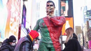 Cristiano Ronaldo szobrot avattak a Times Square-en a sportoló negyvenedik születésnapja alkalmából